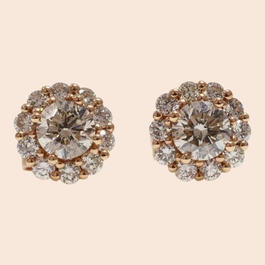 'Nichirin' 18K Rose Gold Diamond Stud Earrings