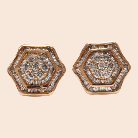 Ancient geometry meets modern romance. The 'Kikkō-hana' or 'Tortoise Shell Flower' studs feature a striking six-sided silhouette in 18k rose gold, inspired by the traditional Japanese symbol for longevity. Within this protective hexagonal frame lies brilliant...Regular price $1,350.00 -