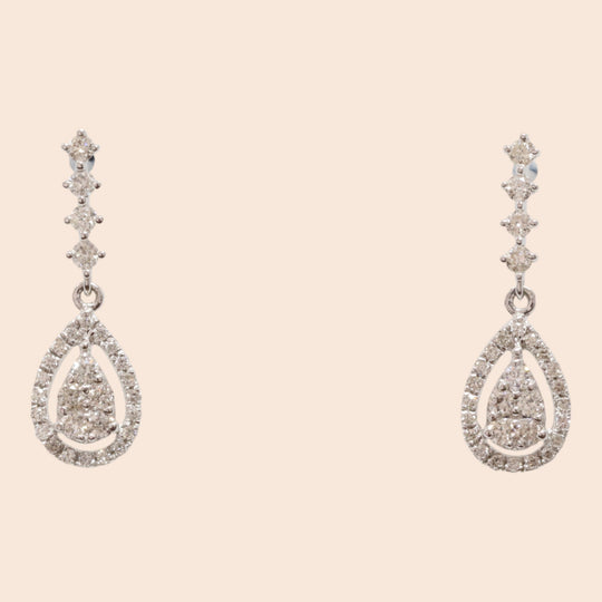 'Shiratsuyu' 18K White Gold Diamond Drop Earring Studs