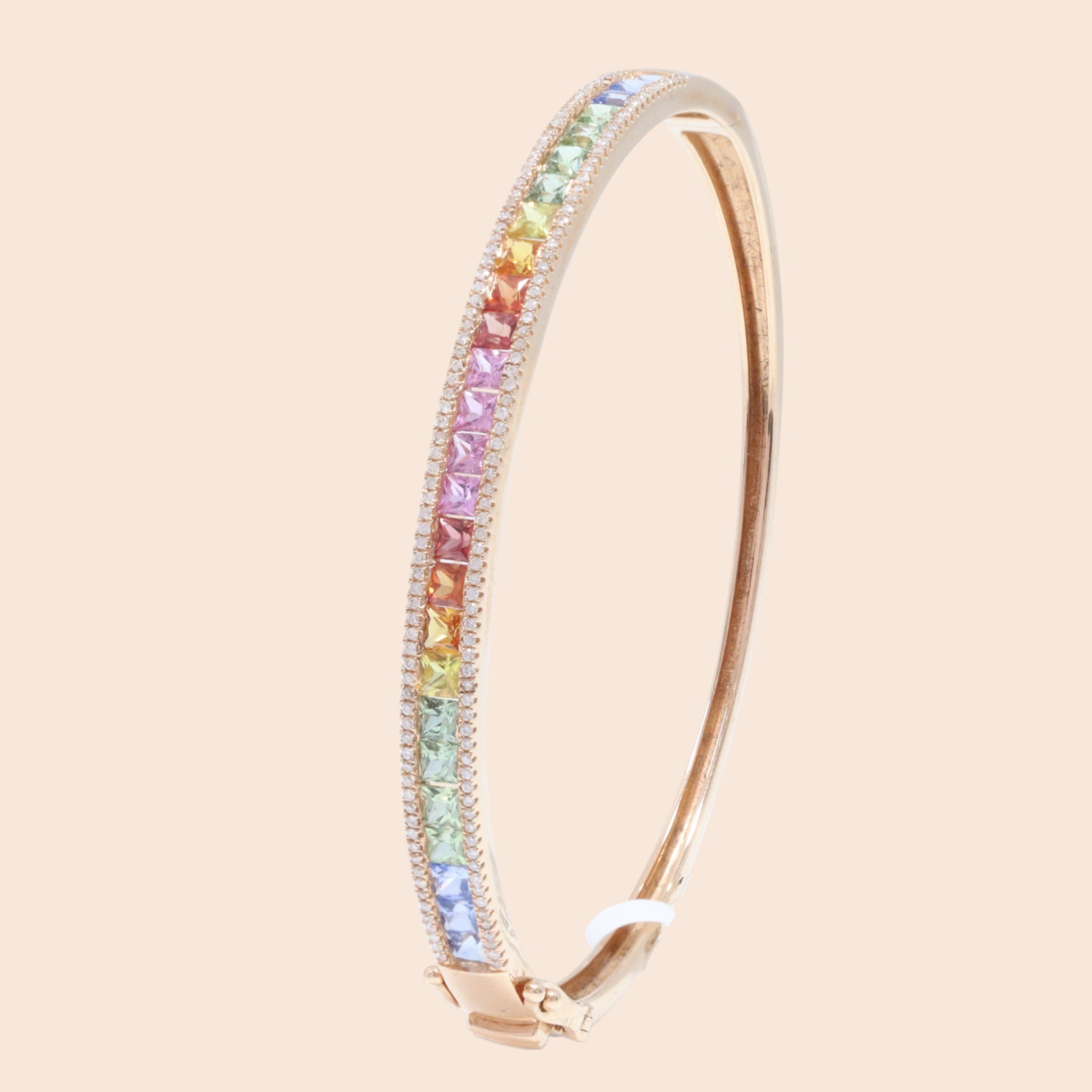 Regular price $2,850.00These earrings feature a stunning ombré transition, meticulously curated from 26 multi-colored sapphires totaling 2.111 ct. The gradient flows through a spectrum of oceanic blues, sun-drenched yellows, forest greens, and cherry-blossom pinks. This vivid display is... -